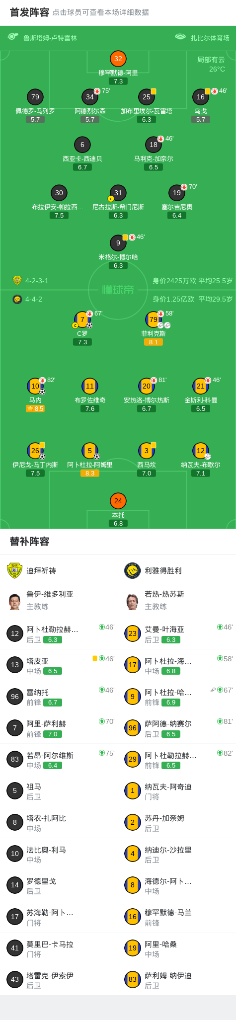 第67分钟,C罗被换下场,阿卜杜拉-哈姆丹替补上场