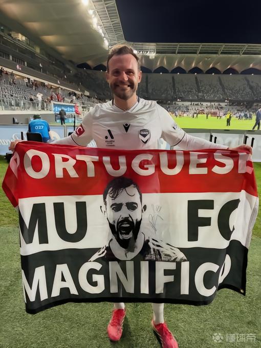 北京时间4月26日,曼联官方社媒晒出一张前曼联球员、现效力于澳超墨尔本胜利队的胡安-马塔,手持现任曼联队长布鲁诺-费尔南德斯的旗帜的照片。