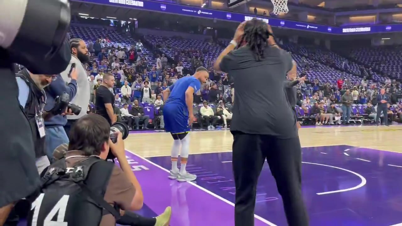 库里赛前热身秀了一记